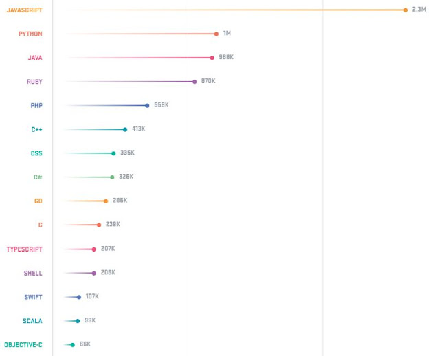 Top Programming languages on GitHub