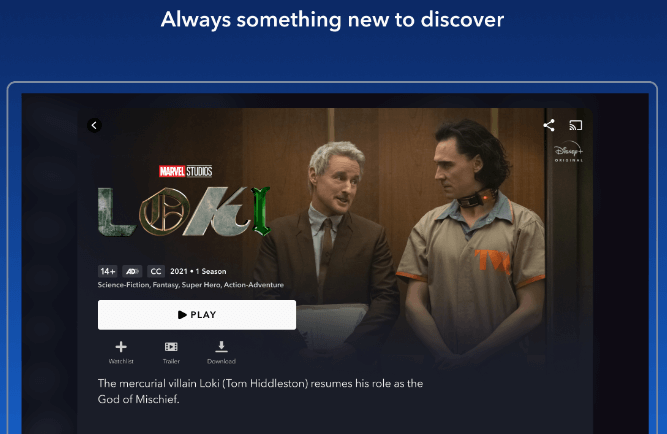 - Disney, Pixar, Marvel, Star Wars, and National Geographic content.
