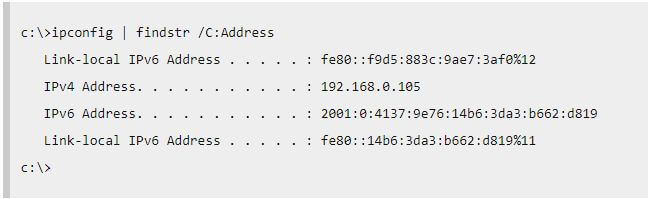 Just using after findstr command you got the new all unwanted information about your IP address which installed on your computer.