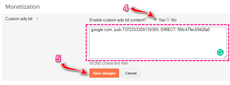 The click on the Save Change button and you are able to place Ads.txt file successfully in blogger blog.