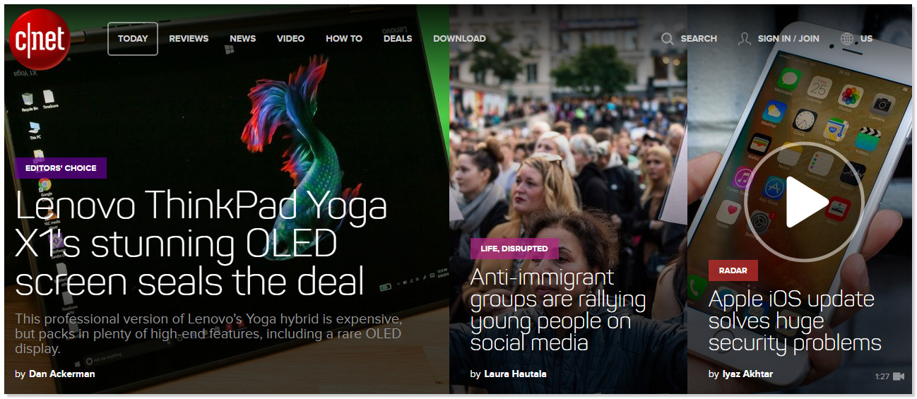 Cnet is a wonderful website about technology. It offers news on a wide range of technological products including computer, mobile, photography, security, tech culture, the tech industry, internet, Google, Apple, Microsoft, etc.